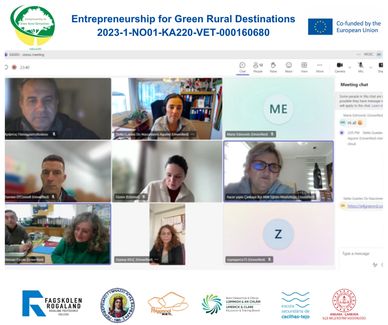 "11th Online Meeting of Project/ 2023-1-NO01-KA220-VET "Entrepreneurship for Green Rural Destinations" (E4GreenRD). We recently held a productive online meeting with our dedicated project partners from Norway, Turkey, Portugal, Cyprus, Ireland, and Finland. During the session: